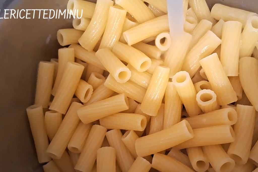 Cuire les pâtes dans une abondante eau bien salée, en les laissant à mi-cuisson.Égoutter immédiatement et rincer sous l’eau courante, égoutter.
