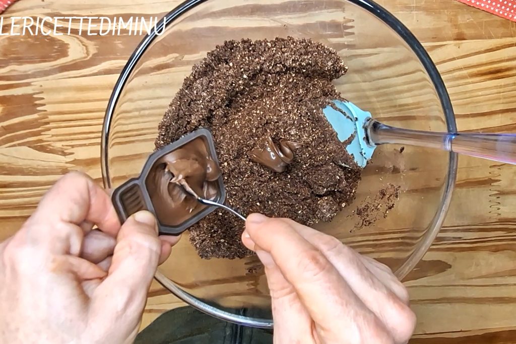 • Ajouter ensuite le beurre, le lait et la nutella et commencer à incorporer avec une spatule.