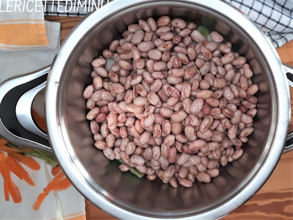 Dans cette recette, j’utilise des haricots secs, que je fais tremper toute la nuit, jusqu’au moment de les cuire.