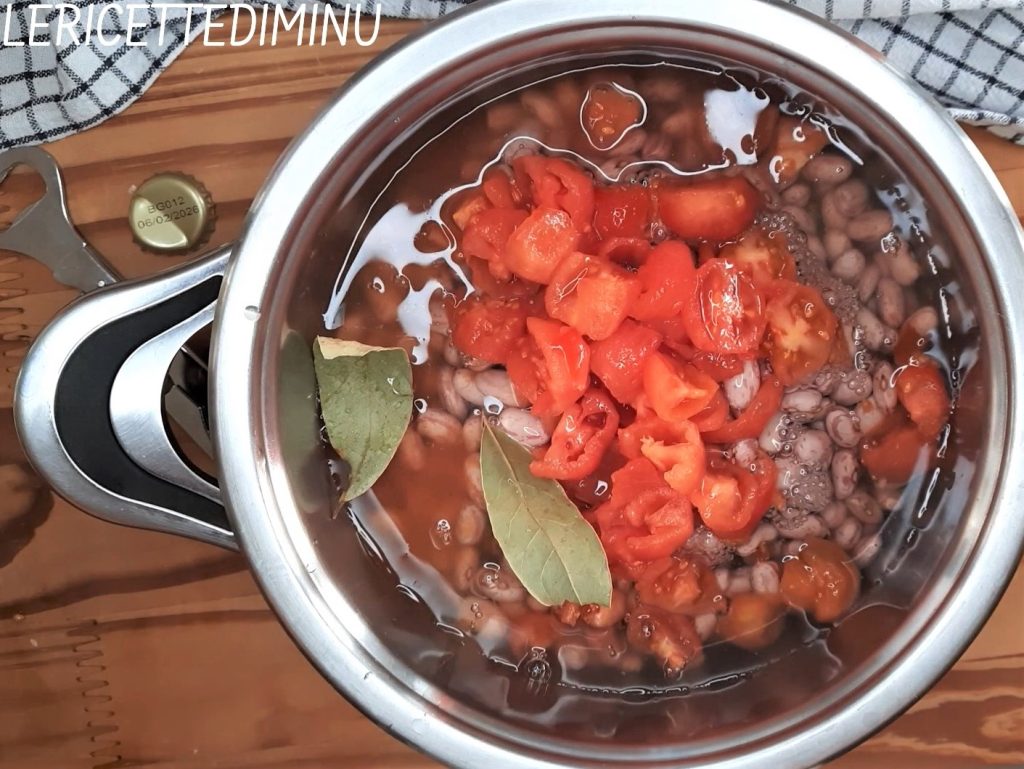 Cuire pendant un total d’environ 50 minutes, en salant peu avant d’éteindre le feu. Ensuite, éliminer les feuilles de laurier.
