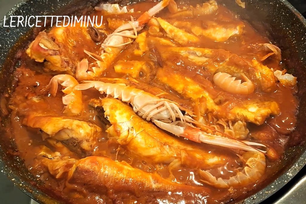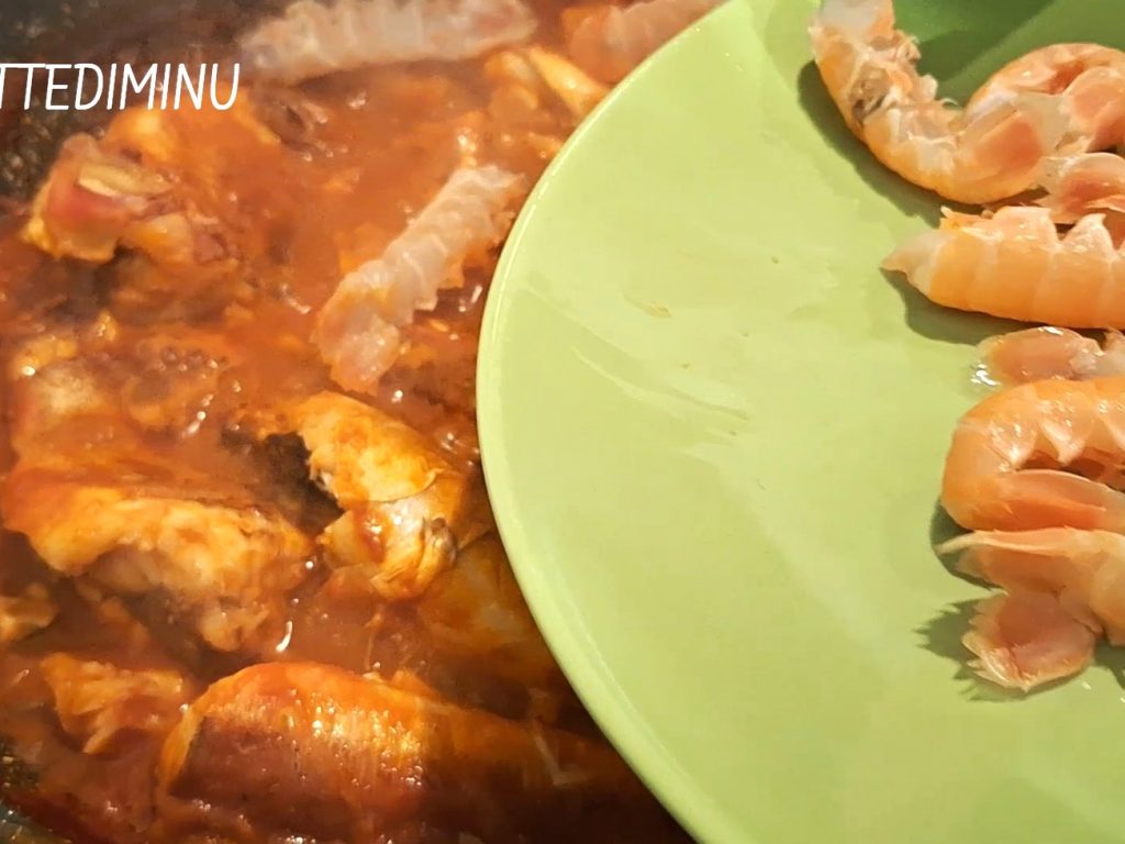 • Quand le poisson est cuit (cela prendra environ 20 minutes au total pour cuire les poissons) et que la sauce a la consistance désirée, éteindre et servir en mettant en valeur les langoustines qui étaient restées entières.