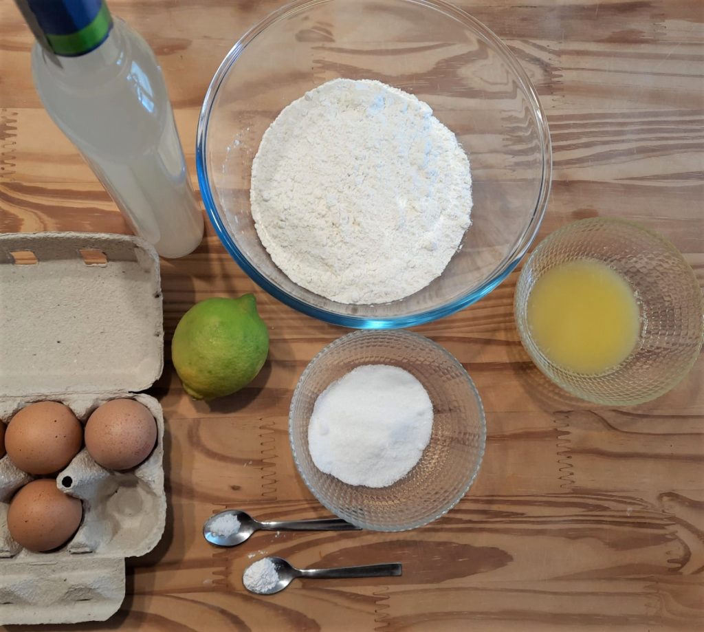 Dans un bol, mélanger la farine, le sucre, la vanilline, la levure tamisée, le zeste de citron râpé.