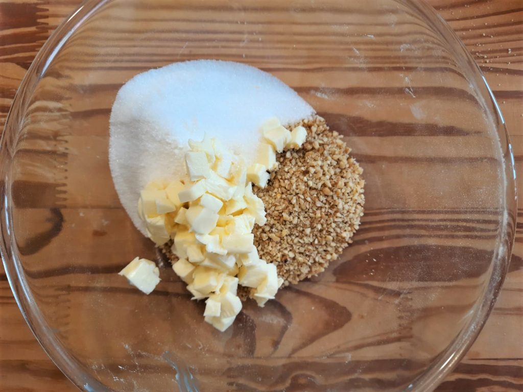 • Pour préparer la pâte sablée aux noix, mixer les noix pas trop finement ou les couper au couteau.