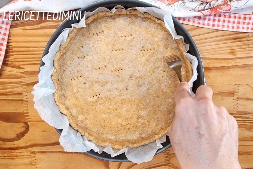 Pour préparer la tarte avec pâte sablée et garniture aux noisettes, si vous ne disposez pas de farine de noisettes, faites griller au four la quantité prévue pour la base et la garniture, bien étalées sur une plaque de cuisson, pendant environ 15 minutes à 180 degrés.