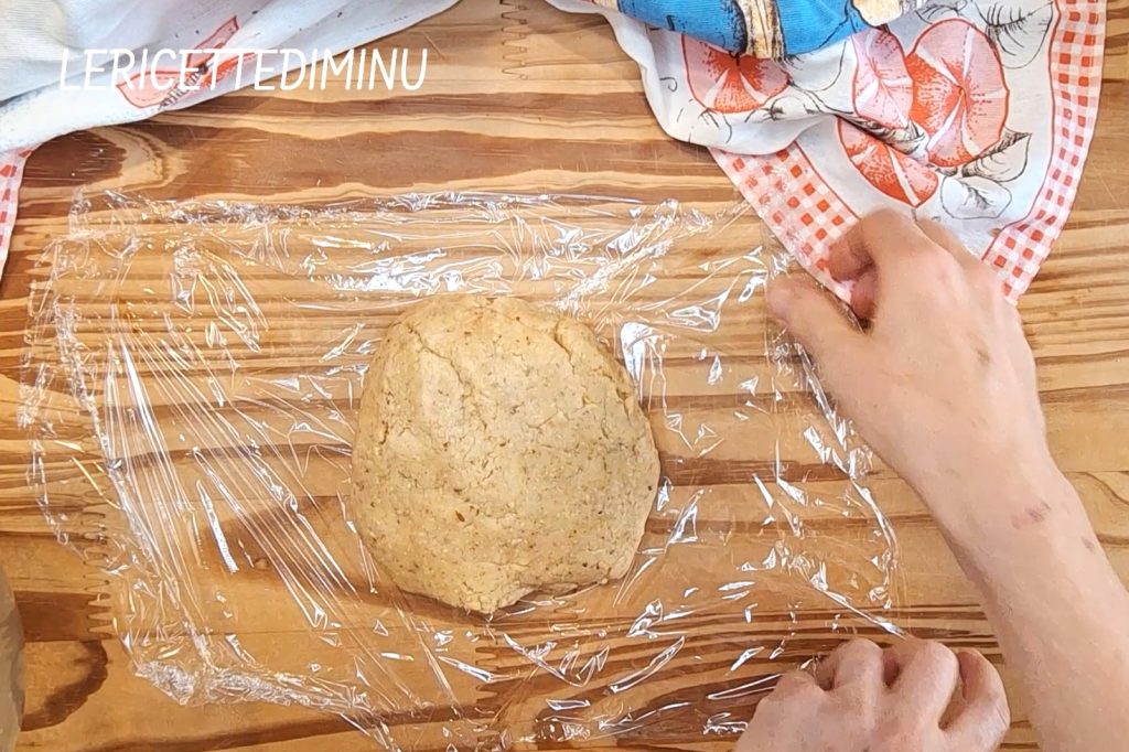 Pétrir rapidement et enrouler le pâton obtenu dans du film alimentaire, laisser reposer au frais au moins une heure.