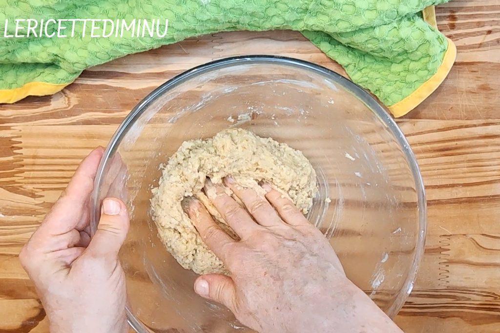 Travailler d’abord avec la spatule puis avec les mains jusqu’à obtenir une pâte homogène.