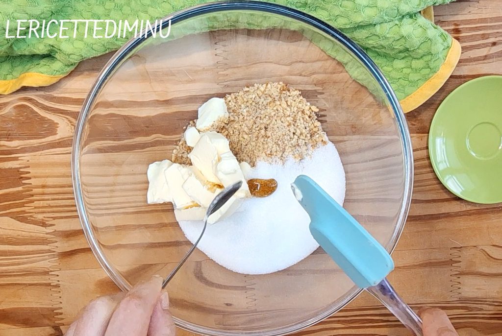 Dans un bol, mélanger celles-ci avec le beurre mou en morceaux, le sucre et l’extrait de vanille.
