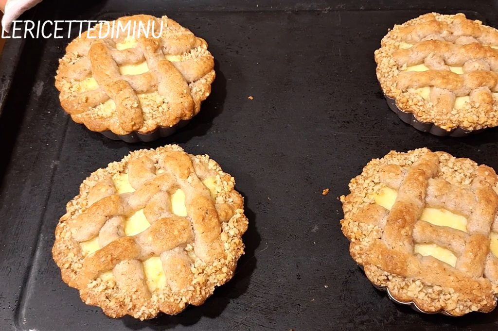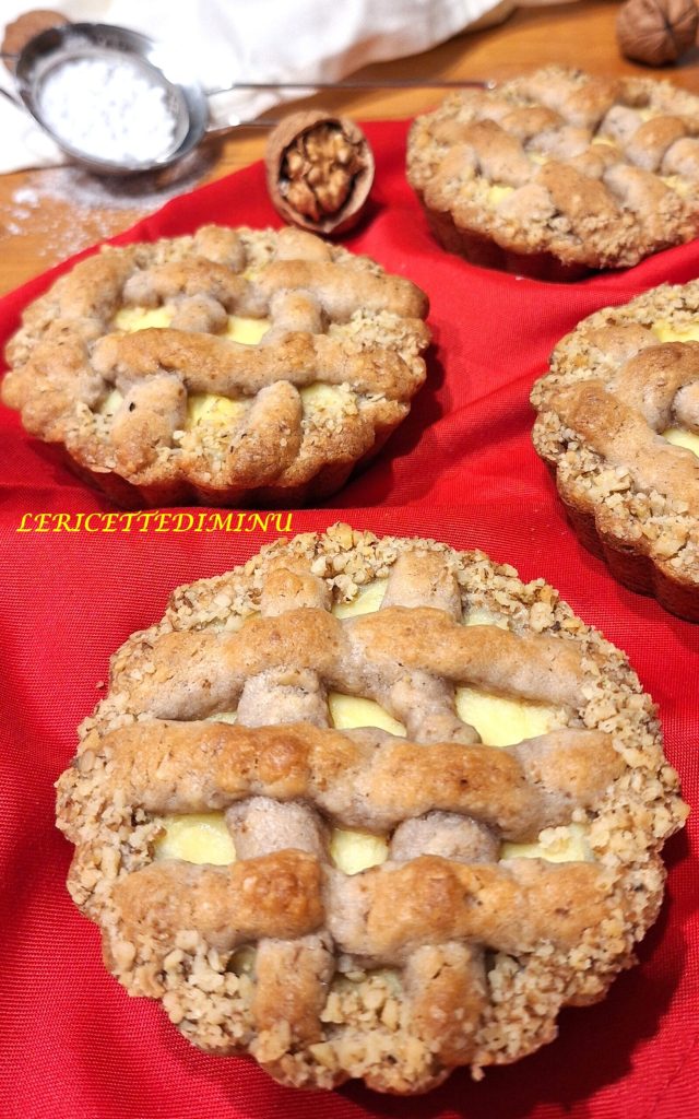 La base de pâte sablée, enrichie d’une généreuse quantité de noix hachées, est friable et parfumée, avec un goût rustique et enveloppant qui se marie parfaitement à la douceur de la crème pâtissière.