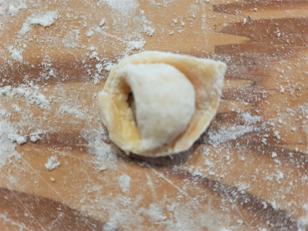 Continuez ainsi jusqu’à épuisement des ingrédients. Les tortellini émilien faits maison sont ainsi prêts.