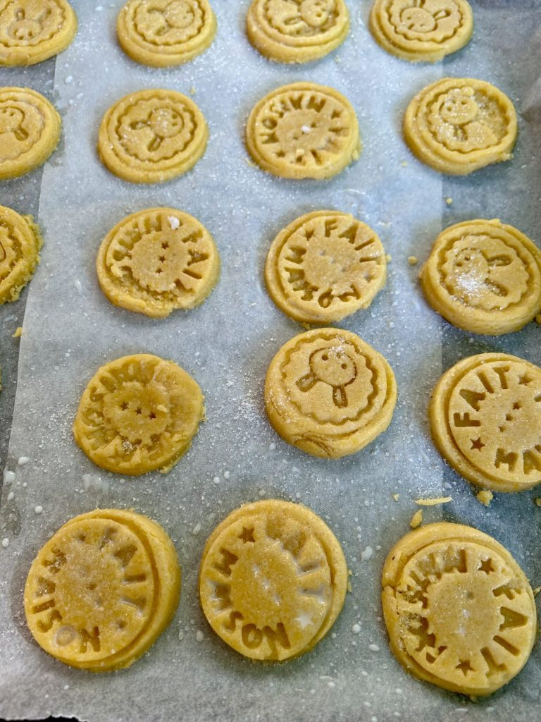 Pour bien imprimer le motif sur le biscuit, je vous conseille de saupoudrer de temps en temps l’emporte-pièce de farine pendant l’utilisation afin qu’il ne colle pas à la pâte. Cependant, comme vous pouvez le voir sur la photo, peu importe si le résultat final est un peu irrégulier, ils sont beaux justement parce qu’ils sont artisanaux et, comme vous le remarquerez, certains sont faits par ma petite-nièce car en suivant la pâte, ils réussissent à faire les autres étapes en toute autonomie et seront toujours des créations uniques et savoureuses.