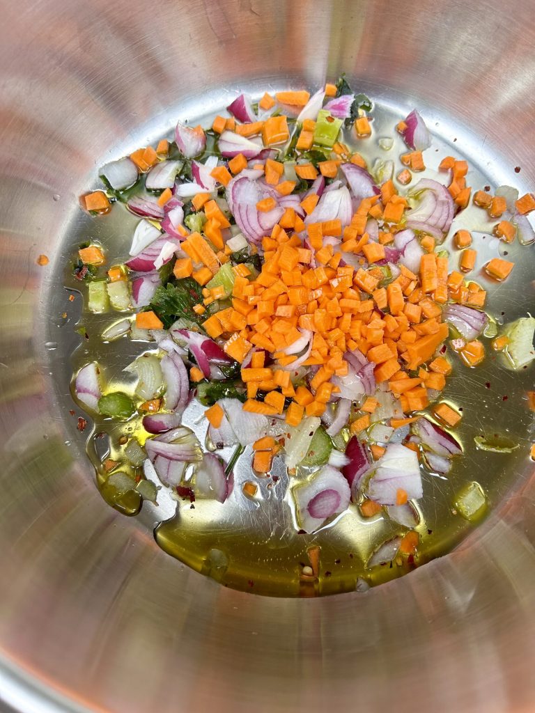 La préparation de base pour un bon ragoût savoureux est toujours un riche soffritto de carottes, oignons et céleri.