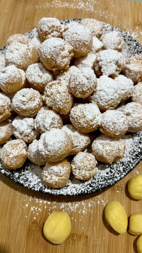 Ces castagnoles sont encore meilleures le jour même, lorsque l’extérieur reste croustillant et l’intérieur friable.