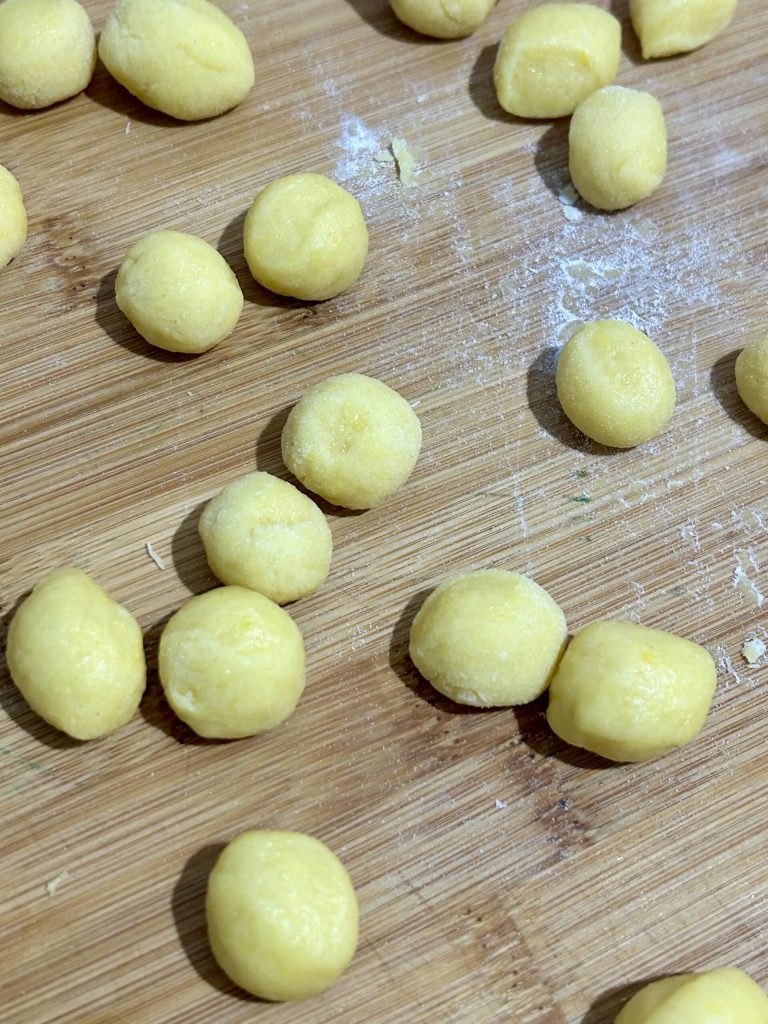 Elle doit être moelleuse comme une pâte sablée, lisse et non collante. N’ajoutez pas trop de farine : juste celle nécessaire pour ne pas qu’elle colle au plan.