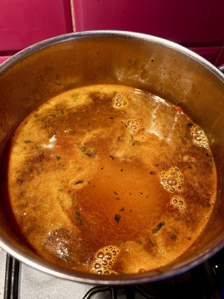 La petite sauce qui doit rester à la fin de la cuisson ne doit pas être trop réduite sinon ajoutez un peu de bouillon de cuisson.