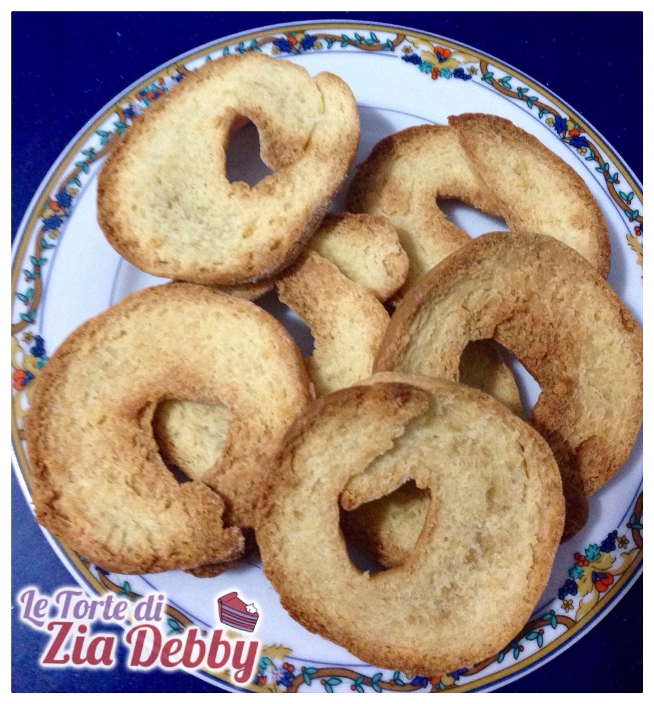 Sortez-les du four juste le temps qu’elles refroidissent légèrement pour pouvoir les couper horizontalement en deux et repositionnez-les sur la plaque de cuisson pour les remettre au four à la même température pendant environ 5 minutes, le temps que même l’intérieur de l’anneau nouvellement coupé soit doré comme vous pouvez le voir sur la photo ci-dessus.