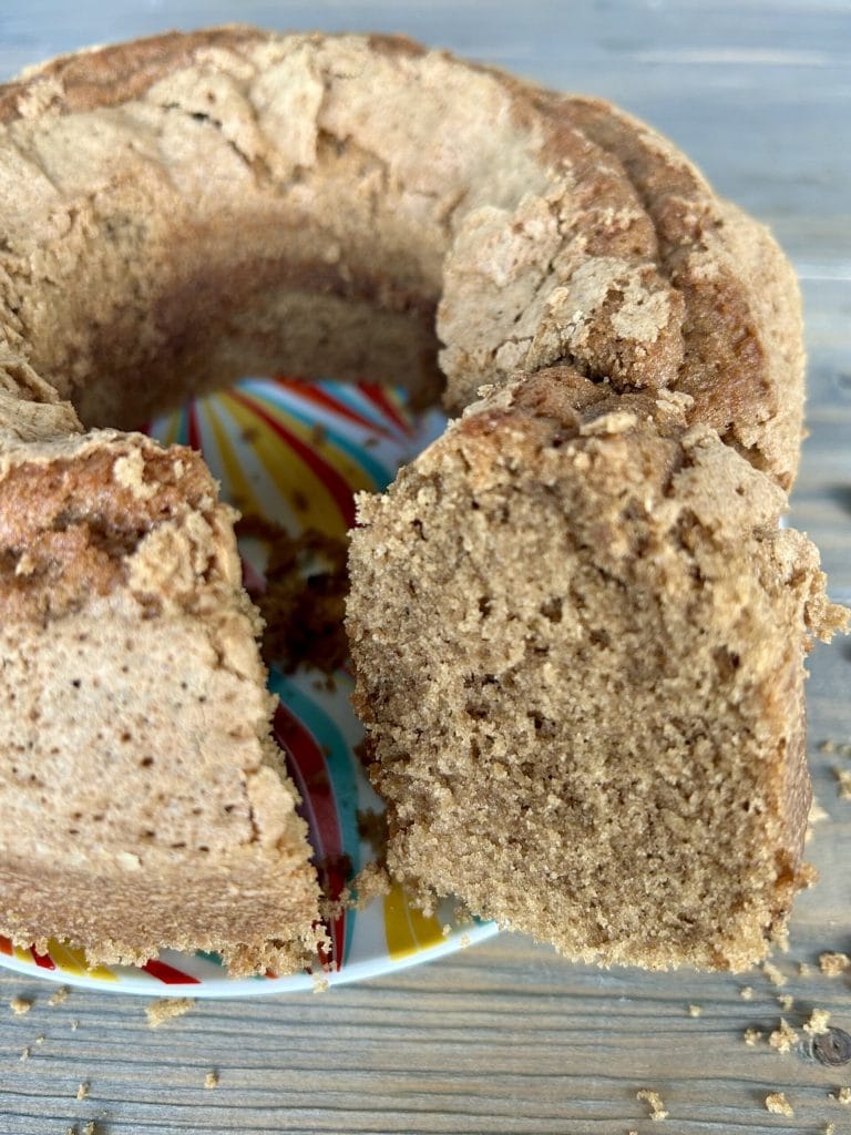 Grâce à l’humidité du café, la pâte reste moelleuse pendant des jours, un de ces gâteaux qui fondent dans la bouche. Et en surface, une croûte légère et douce se forme, sans que j’aie ajouté du sucre : elle apparaît toute seule pendant la cuisson, et elle est tout simplement irrésistible !