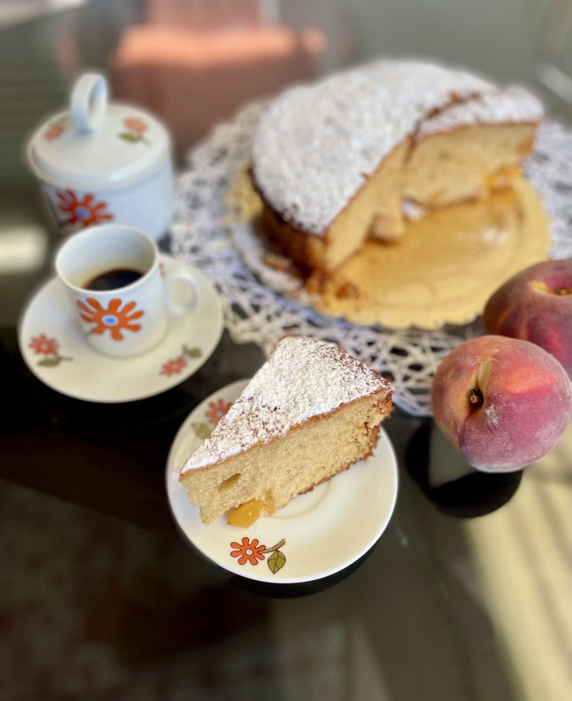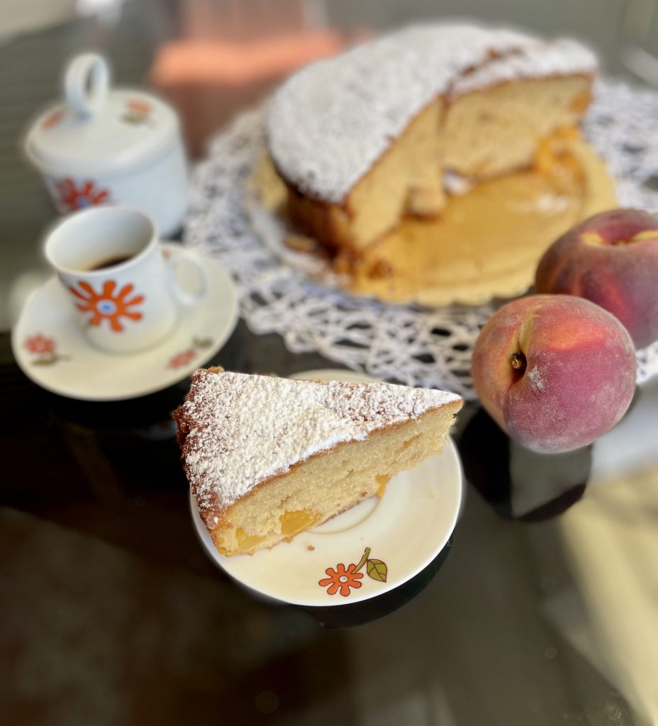 GĂąteau aux pĂȘches pour le petit-dĂ©jeuner est l’idĂ©e qui m’est venue pour consommer les pĂȘches que j’avais achetĂ©es en excĂšs mais il est devenu l’un de mes prĂ©fĂ©rĂ©s avec le gĂąteau renversĂ© Ă l’ananas. C’est un gĂąteau moelleux, humide et savoureux qui s’accompagne bien des boissons du petit-dĂ©jeuner, du simple cafĂ©, du thĂ©, mais qui peut aussi se manger seul grĂące Ă sa consistance.