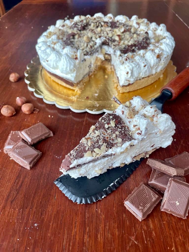 Sur le web, il existe différentes versions de ce même gâteau mais en en essayant certains, j’ai trouvé ma dose parfaite : un biscuit pas trop épais et une crème plus abondante, avec du chocolat fondu et des noisettes concassées qui rappellent vraiment le cœur de crème.