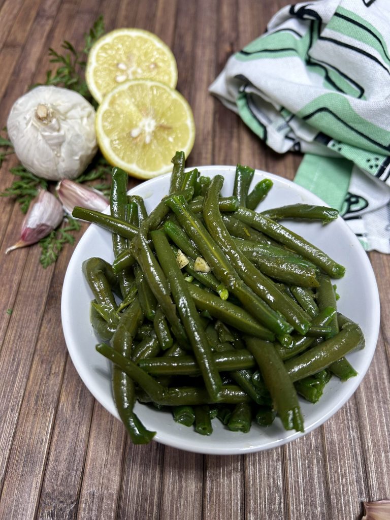 Je vous conseille d’ajouter l’ail en petits morceaux car il donnera meilleur goût à vos haricots verts et si vous ne souhaitez pas le consommer, il sera facile de l’écarter dans l’assiette avec la fourchette.