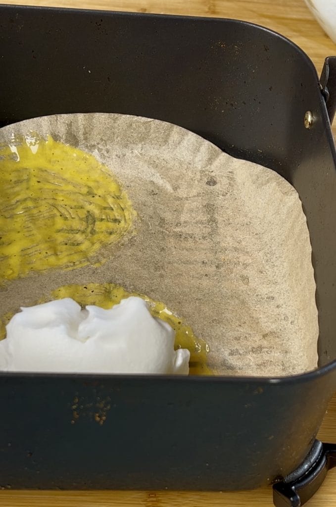 La cuisson originale prévoit le four à 180° pendant environ 7-8 minutes, mais j’ai choisi la friteuse à air à 160° : résultat parfait, et sans allumer le four!