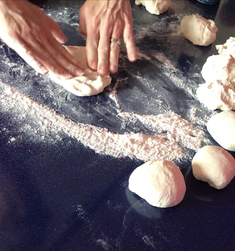 Après le temps de levée, divisez la pâte en 11 pièces et pliez chaque pièce comme on le voit dans la vidéo pour former plusieurs boules qui devront reposer encore 30 minutes couvertes d’un linge