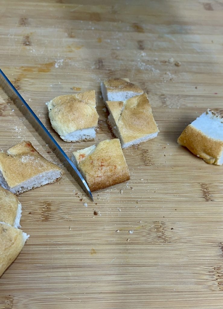 Pour commencer, il est nécessaire de couper le pain rassis et de le mixer finement à l’aide d’un robot culinaire. Il est important de le mixer le plus possible pour obtenir une consistance homogène. Pour simplifier cette opération, j’ajoute également le sucre prévu par la recette dans le robot tout en mixant le pain. Vous pouvez suivre toutes les étapes dans la vidéo ci-dessus.