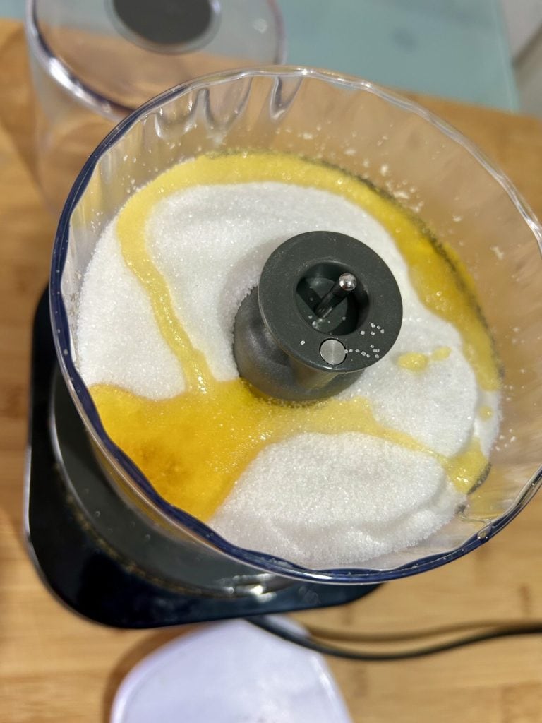 Ajoutez dans le hachoir le sucre en poudre, la cuillère de miel et l’arôme choisi.