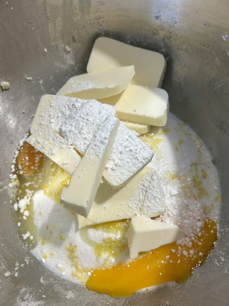• Mettez tous les ingrédients dans le bol du robot pâtissier, avec le crochet plat monté, et démarrez à basse vitesse jusqu’à obtenir une pâte homogène, même si elle peut paraître un peu friable. Si vous n’avez pas de robot, vous pouvez pétrir à la main, en formant une fontaine avec la farine et en mettant les ingrédients au centre, puis en les mélangeant ensemble.