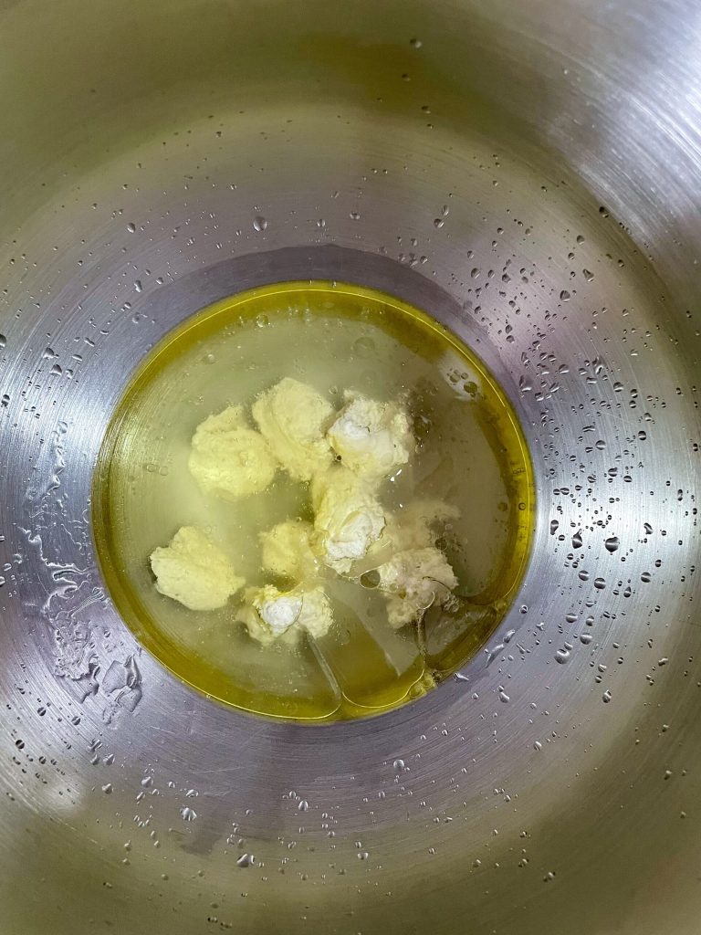 Pour préparer la pâte, je vous conseille d’utiliser le robot de cuisine avec le crochet pour pâtes dures, mais vous pouvez aussi pétrir à la main.