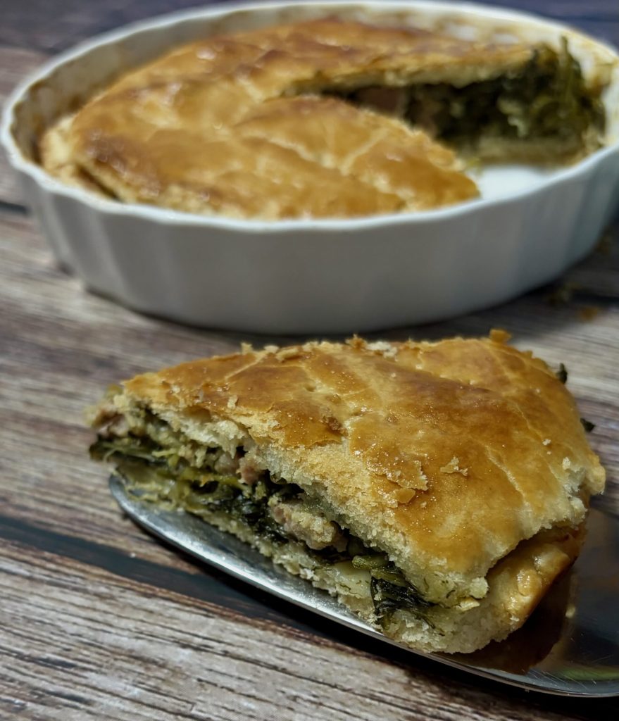 Cette tarte rustique avec chicorée et saucisse est une recette simple mais riche en saveurs, parfaite lorsque vous avez envie de mettre quelque chose de sain et satisfaisant sur la table sans passer des heures en cuisine. La pâte brisé maison, rapide et sans complications, enveloppe une farce rustique qui rappelle les parfums de la tradition.