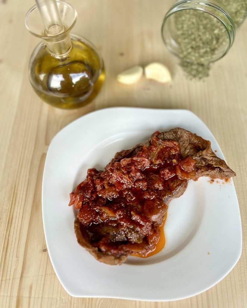 Il s’agit d’un deuxième plat léger à base de viande, sauce tomate, ail et huile. Tout est cuit ensemble, donc pas besoin de faire revenir et l’ajout d’huile doit être vraiment minime, si vous êtes au régime vous pouvez aussi ne pas en ajouter.
