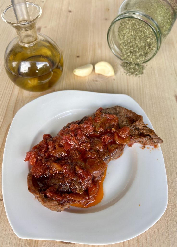 Bien sûr, vous pouvez faire aussi une autre viande à la pizzaiola. Comme il s’agit d’une recette riche en goût grâce à l’ail, au piment et à l’origan, je recommande une viande forte comme le bœuf ou la scottona, mais vous pouvez aussi utiliser du veau.