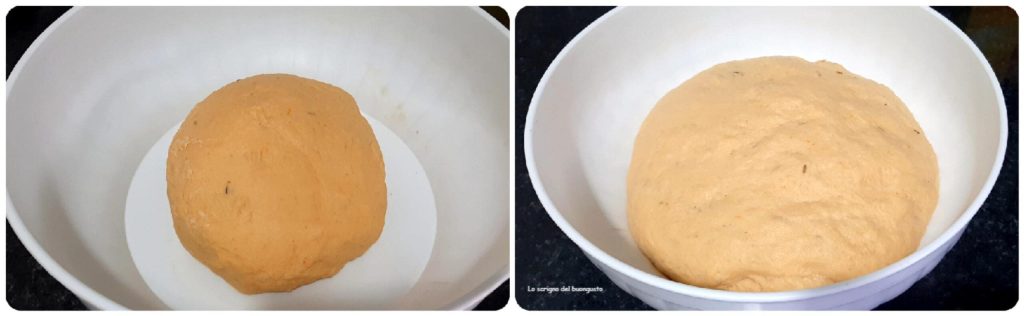 Une fois le pétrissage terminé, transférer la pâte dans un bol et couvrir avec un film alimentaire, laisser lever pendant environ deux heures.