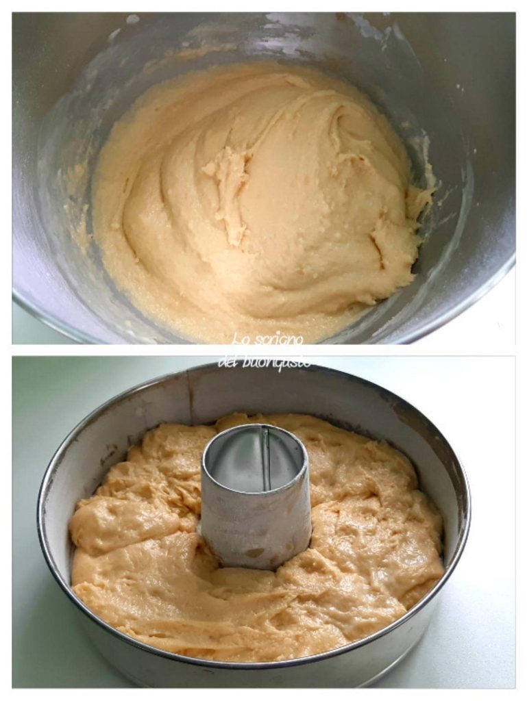 Pendant ce temps, préparez le moule pour le casatiello et vous pourrez utiliser celui pour le panettone de 1 kg, ou le moule pour gâteau chiffon américain, moi j’ai utilisé une fois le moule pour gâteau chiffon et cette fois-ci, comme sur la photo, un moule à bords hauts un peu plus large avec la forme à kouglof.