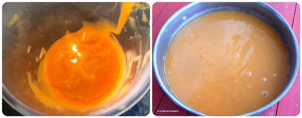 • Ensuite, préparer la deuxième couche et dans une casserole à fond épais mettre les pêches en morceaux sans peau ni noyau, ajouter le sucre, le citron et laisser cuire à feu moyen doux, en remuant de temps en temps.