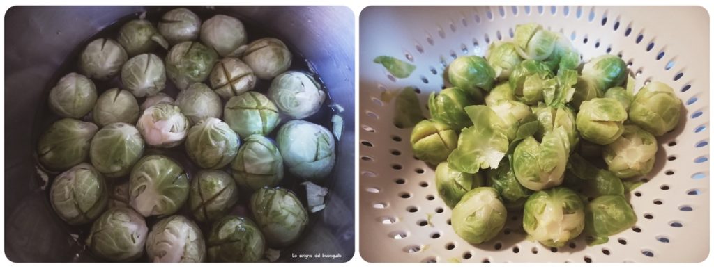 Préparation des Choux de Bruxelles et pancetta croustillante