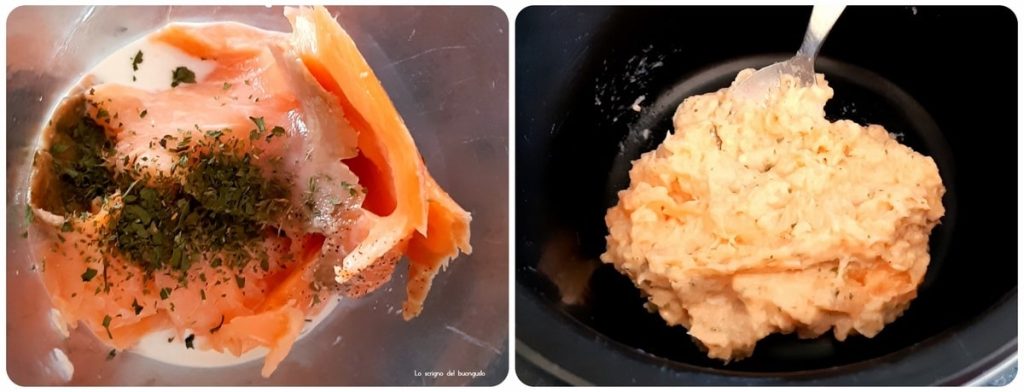 Dans un pot, mettez le saumon fumé, le lait, le persil, le poivre et mixez le tout avec un mixeur plongeant.