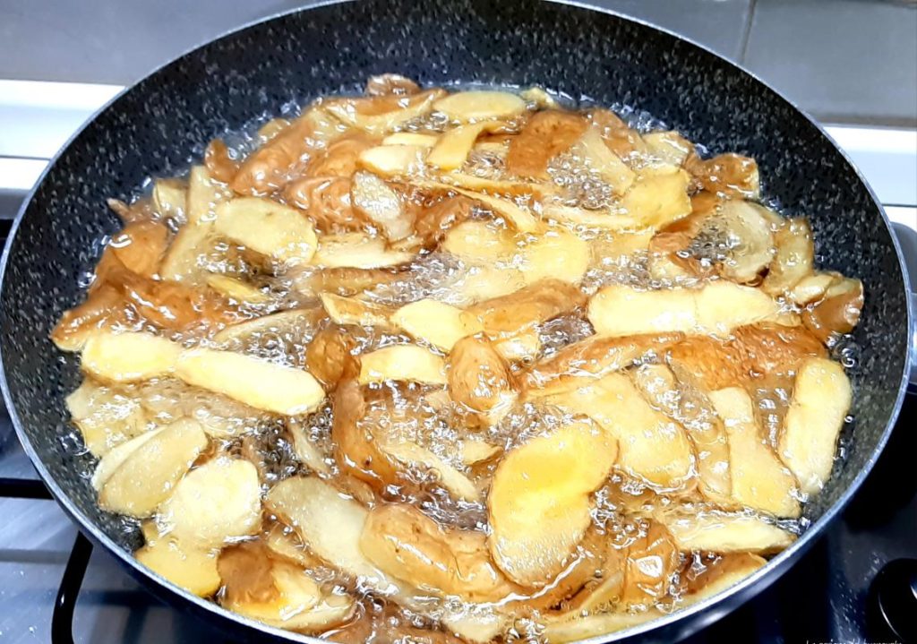 Une fois séchées, préparez l’huile pour la friture et lorsque l’huile aura atteint la température souhaitée, ajoutez-y les épluchures et laissez-les cuire jusqu’à ce qu’elles deviennent bien croustillantes.