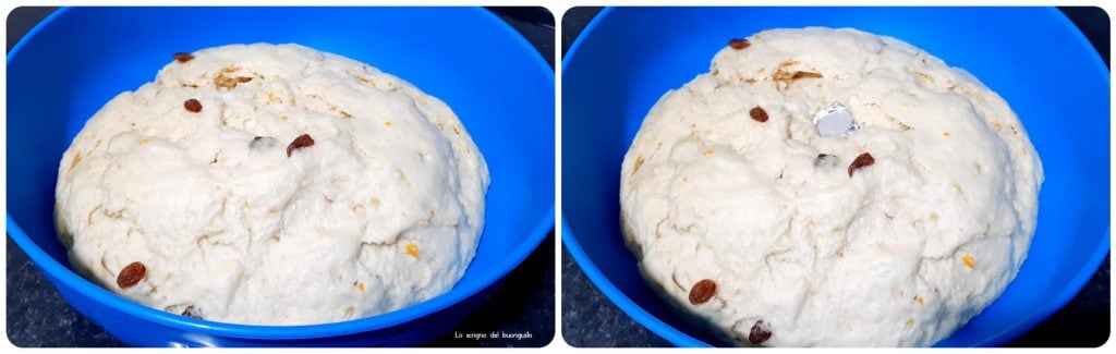 Surprise parce qu’à l’intérieur se cache une fève sèche ou une pièce de monnaie enveloppée dans du papier aluminium, ceci comme symbole de fertilité et de santé qui portera chance à celui qui la trouve.
