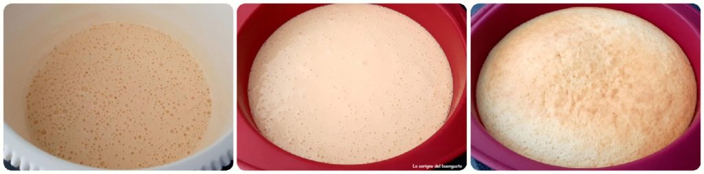 À ce stade, prendre un moule de 22-24 cm de diamètre, beurrer et fariner, ou un moule en silicone comme je l’ai fait, y verser la moitié du mélange et cuire dans un four préchauffé à 180 °C pendant 15 minutes.