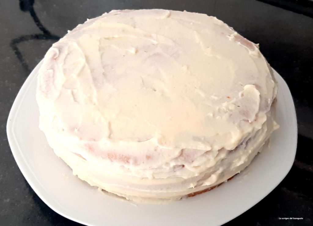……….puis faites une couche légère de crème sur tout le gâteau et ajoutez-en également sur les côtés.