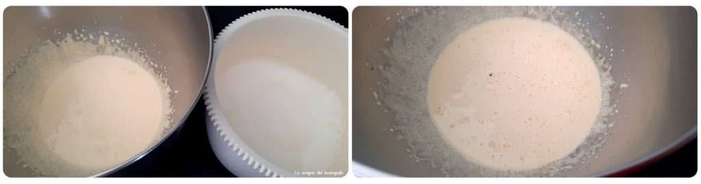 • Lorsque le gâteau est prêt pour le glaçage, prendre une casserole et mettre l’eau avec le sucre et chauffer sur le gaz jusqu’à obtenir un sirop sans le laisser brunir.