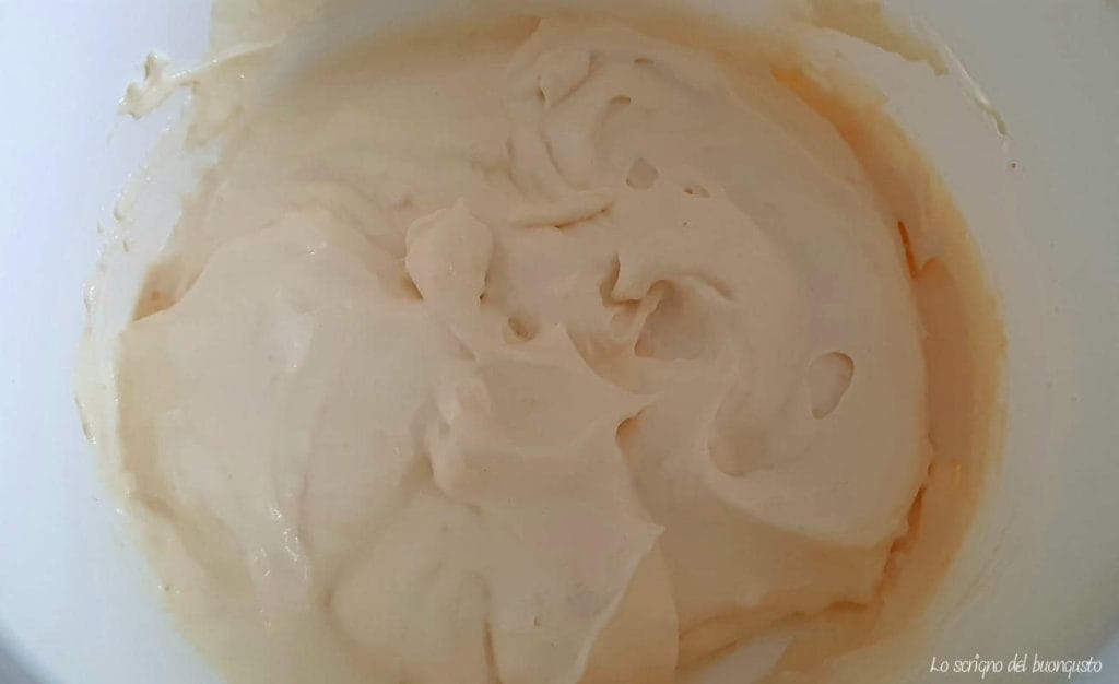 La photo de la crème ne donne pas beaucoup l’idée un peu aussi à cause de la lumière, mais c’est quand même une crème chantilly au sabayon.