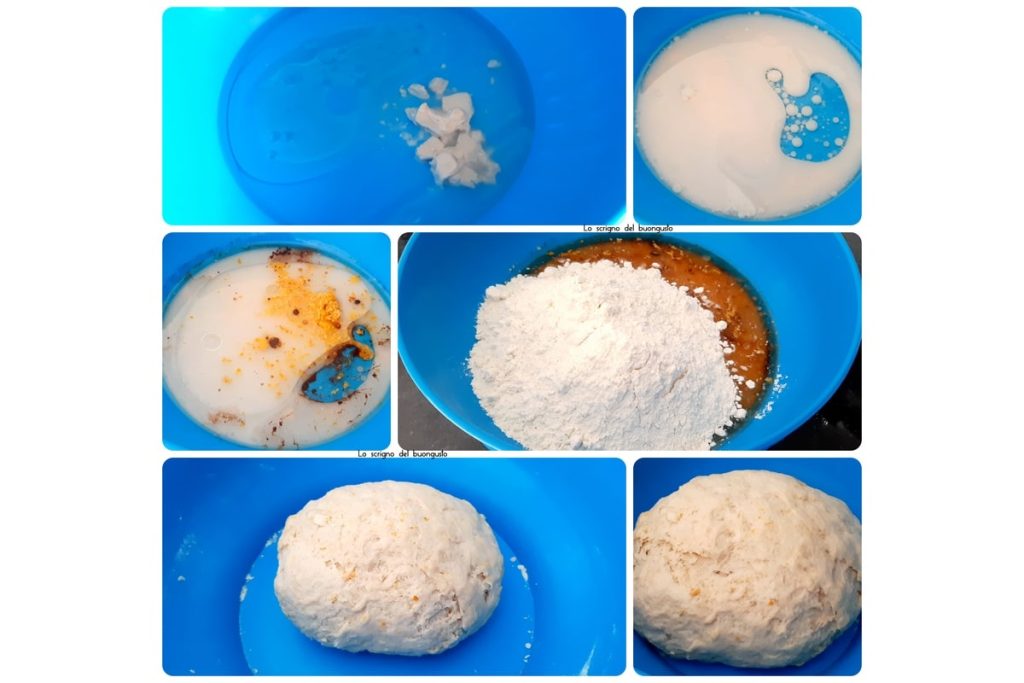 Ensuite, ajouter le zeste d’orange râpé, la cannelle et une partie de la farine, bien mélanger, ajouter le sucre et le reste de la farine en continuant à travailler jusqu’à obtenir une pâte bien amalgamée.