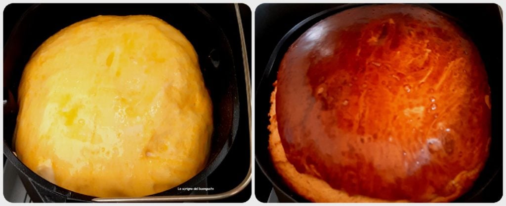Une fois que la pâte a doublé, mélanger dans un verre le jaune d’œuf avec l’eau et badigeonner la surface du pain brioché.