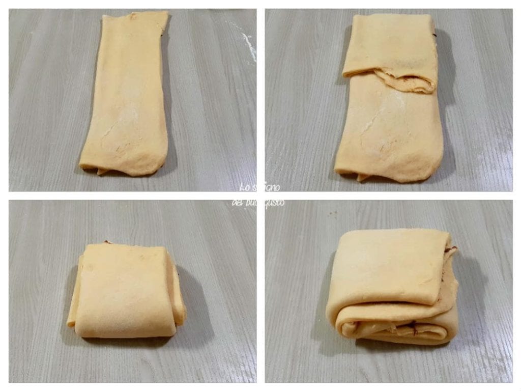 Refermez comme nous l’avons fait pour le feuilletage, jusqu’à obtenir un pâton replié.