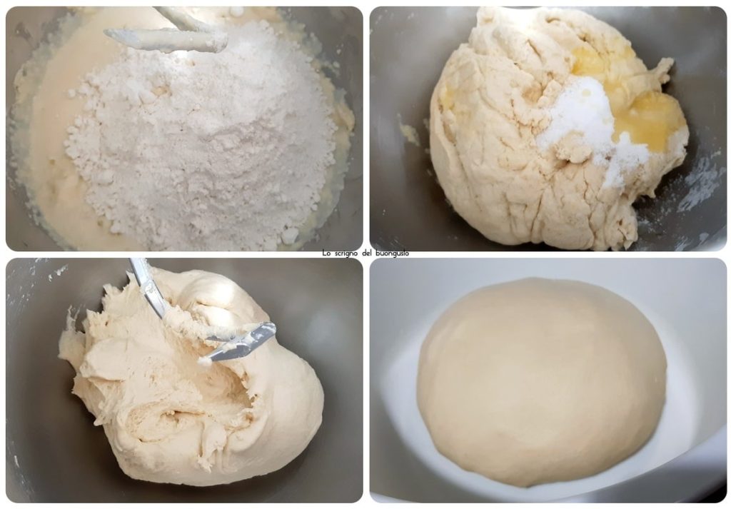 Une fois le tout pétri, ajouter l’huile et le sel et compléter la pâte, en travaillant encore quelques minutes.