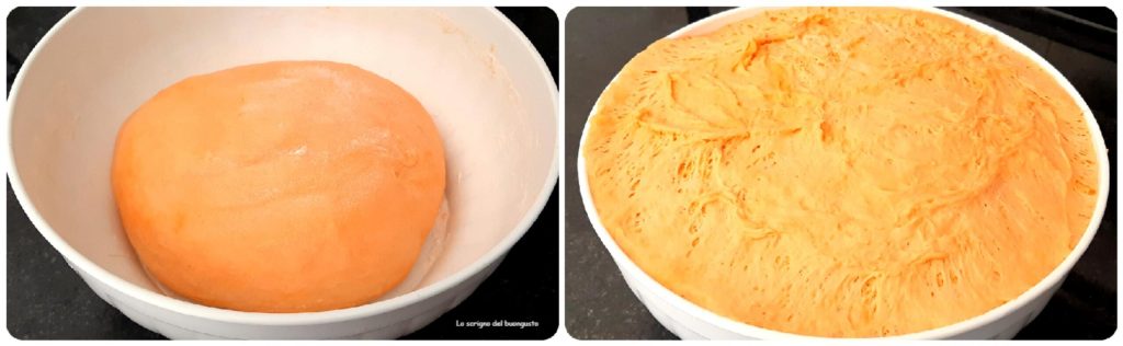 Laisser la pâte lever, couverte dans un grand bol jusqu’à ce qu’elle double.