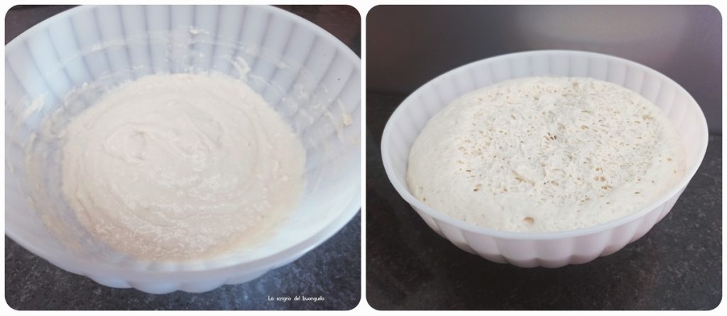 Dans un bol, mettre la levure dissoute dans le lait, ajouter 100 grammes de farine, bien pétrir et laisser lever couvert pendant au moins une heure.