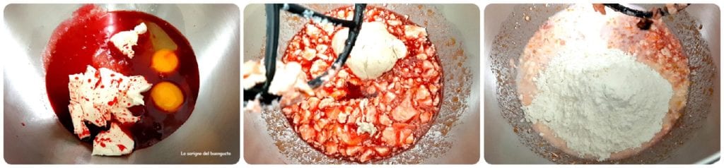 • À la fin de la levée, prenez le batteur ou l’endroit où vous allez pétrir, ajoutez les œufs, le sucre, le beurre ramolli, l’alchermes, le rhum et mélangez bien.